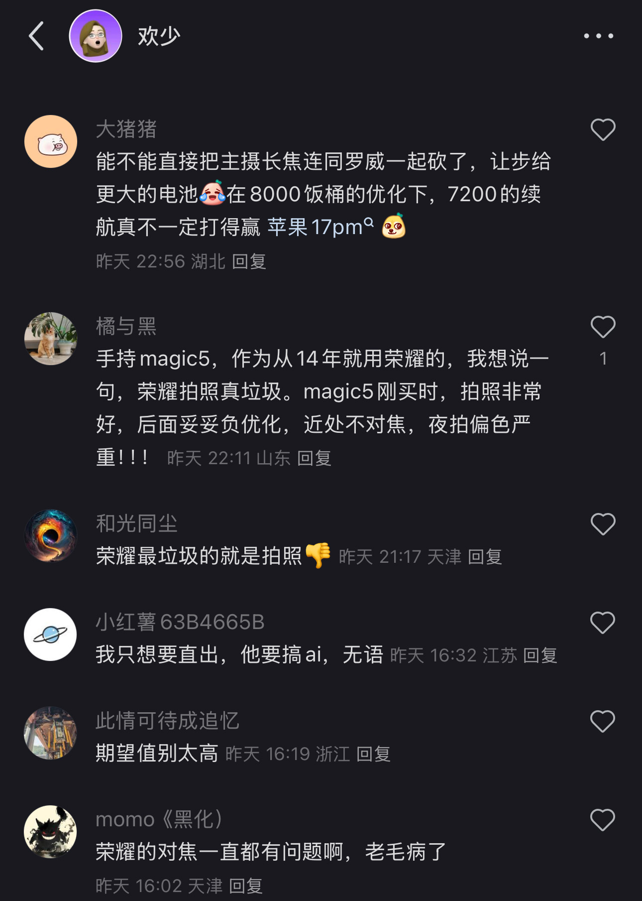 重视用户反馈并及时改善和解决问题,管理好员工言论,是荣耀迫切需要提升的。手机影像赛道,建议荣耀还是先扎实做好“小王”再喊“大王”吧。