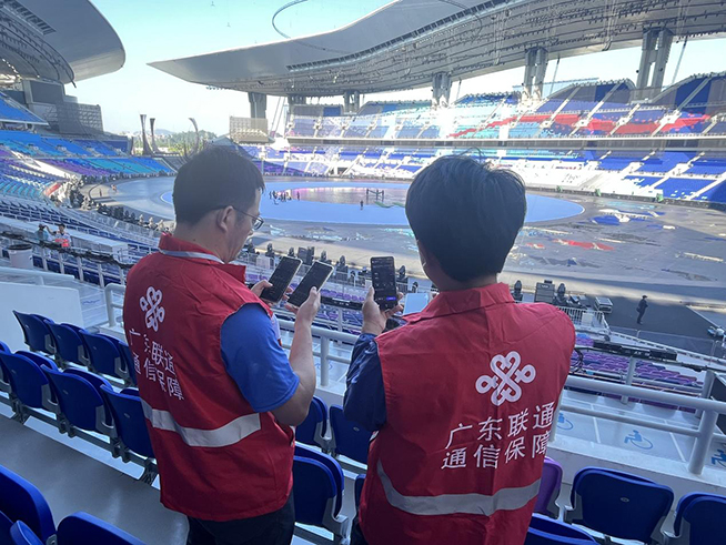 为做好开幕式通信保障工作,中国联通还设立了专项工作组,累计出动保障人员5000人次,在广东奥林匹克体育中心及周边区域部署214个5G小区和270个4G小区,满足了8.4万观众的通信需求。开幕式当天,自早上7时起,前台,75名骨干驻守广东奥林匹克体育中心各关键点位;沿线,120名骨干对46公里主干线路进行不间断巡防;后台,328名工程师对全网进行全天候、无死角监控,投入保障人员超2000人。同时在重点场馆配备多条备份线路、7辆应急通信车和多套卫星设备,形成了立体化通信保障布局,确保万无一失。