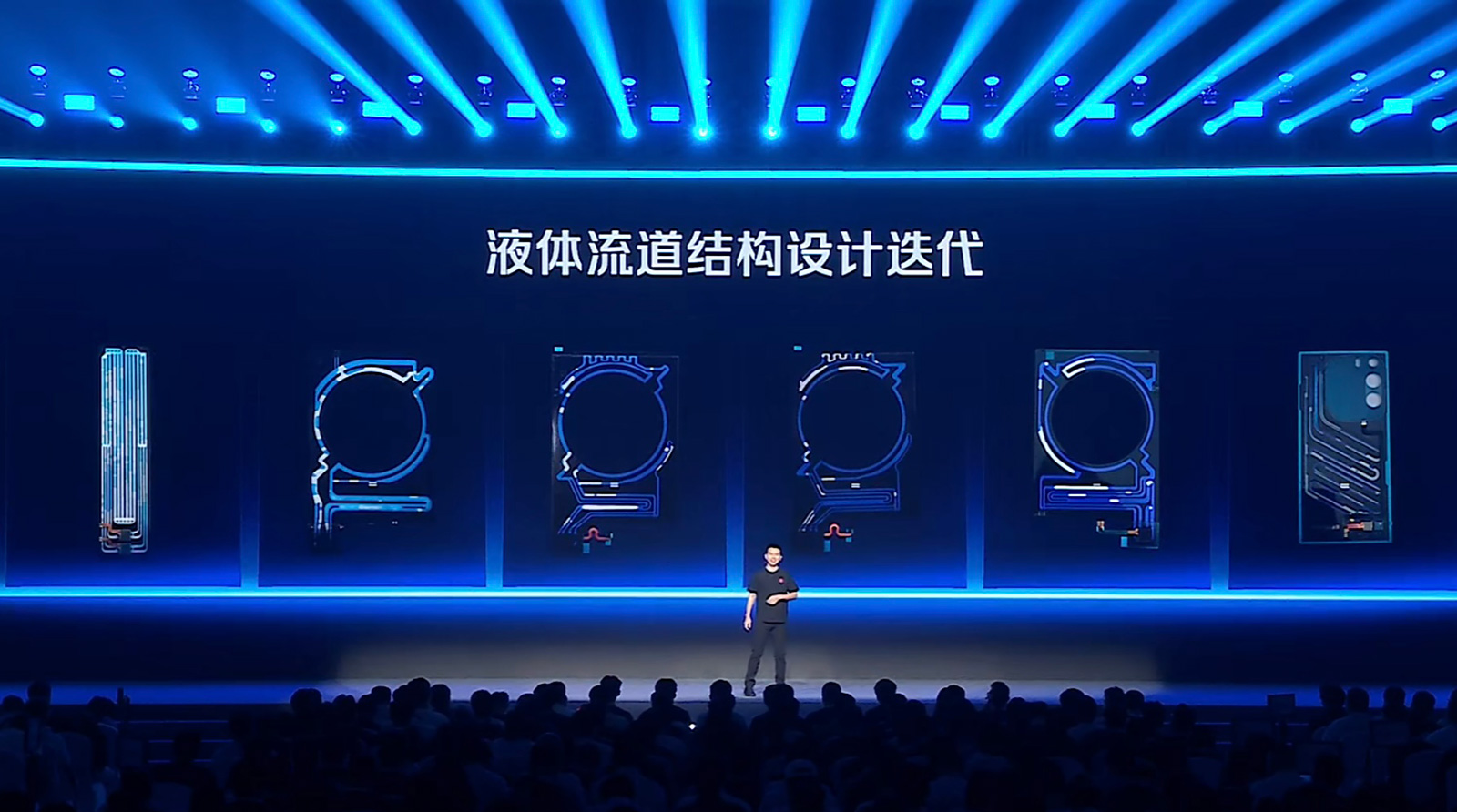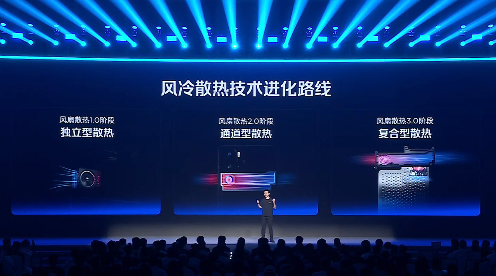 在发布会上,红魔游戏手机产品总经理姜超表示,友商的风冷效果相当于红魔的1.0版本,现在红魔11 Pro已进化至3.0版本。在友商的鞭策下,红魔11 Pro系列的风扇转速终于实现突破,其每分钟转速提升至24000转,风冷散热的表现得到加强。为探索手机散热的更多可能性,红魔11 Pro+专门打造了水冷解决方案,并通过透明后盖直接将蓝透的圆环、循环转动的水冷液展示在用户面前。双冷方案结合,红魔游戏手机能够更快散热。