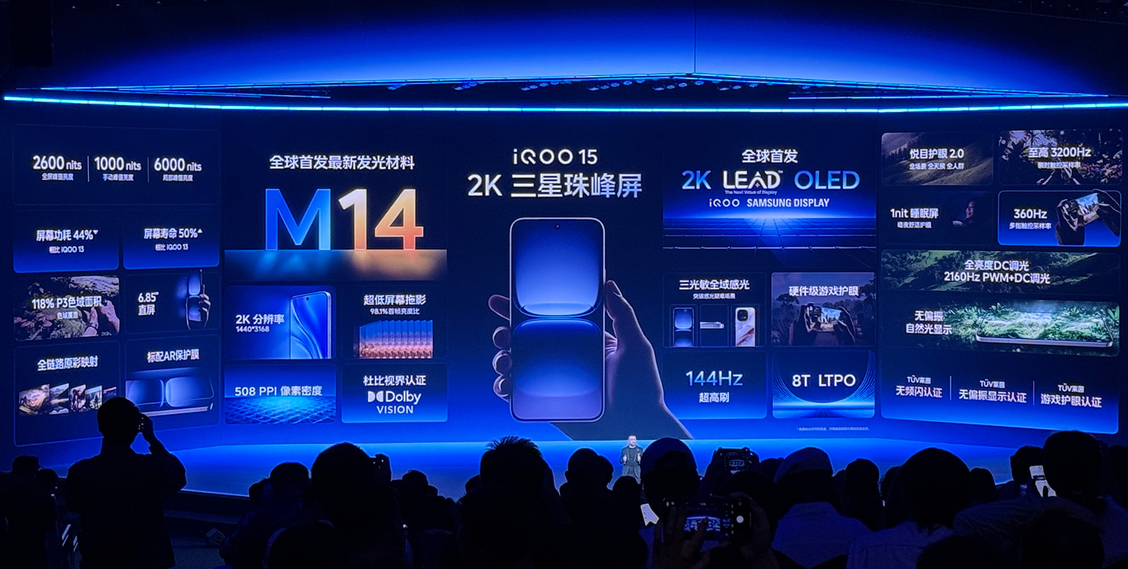 屏幕是iQOO 15跨代领先的底气之一,其配备立项两年多打造的2K三星珠峰屏,采用三星M14发光材料,带来功耗、低碳环保、色域、差异化设计的体验领先。其中屏幕功耗相比友商1.5K屏还低40%,标配AR超清增透膜,保护屏幕的前提下更好还原这块好屏幕的各种优势。
