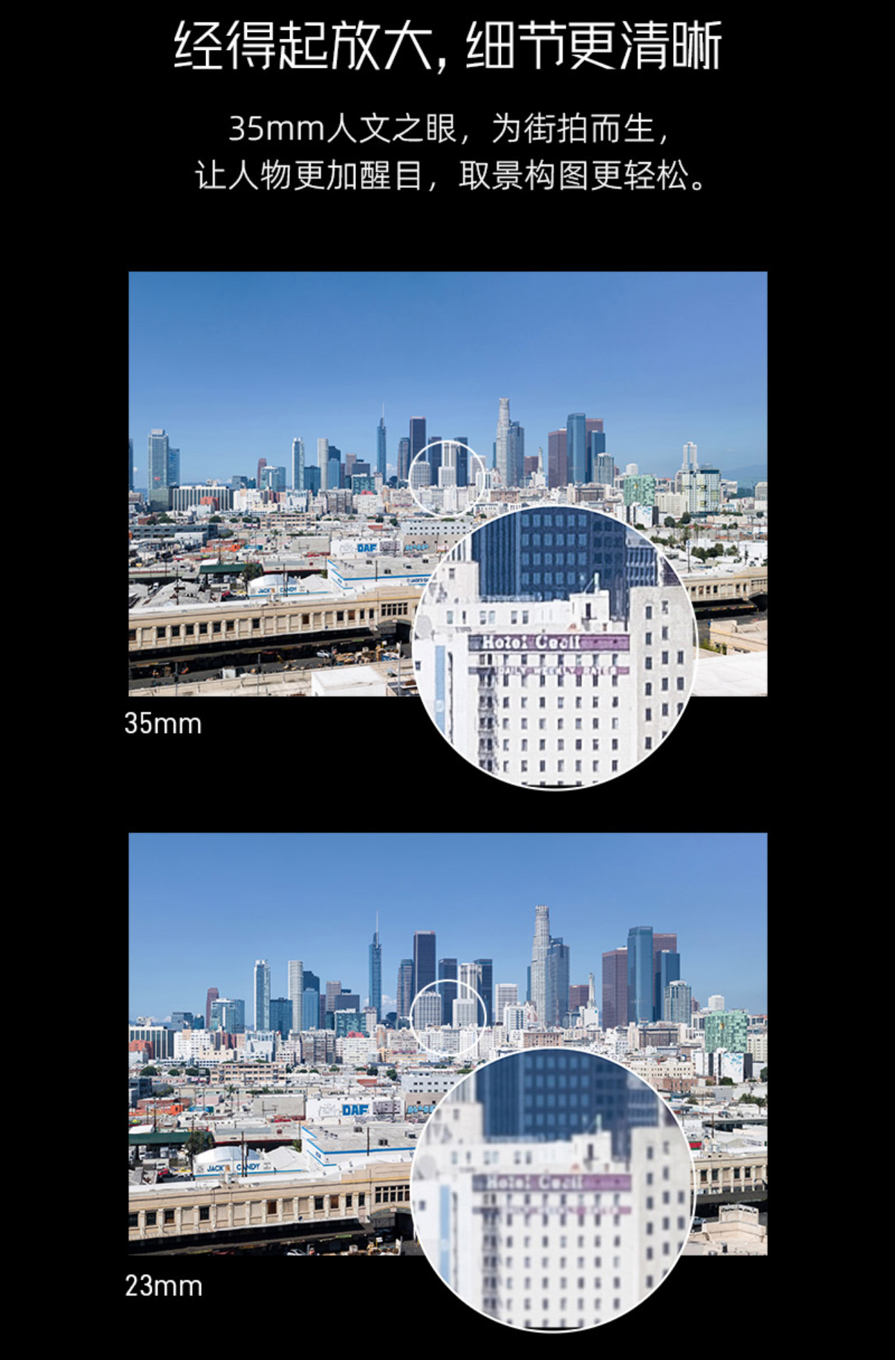 努比亚Z80 Ultra主摄改用1/1.3英寸光影大师990定制传感器(OV50H),坚持采用35mm解决方案,但相比上代砍掉了物理可变光圈。努比亚认为,35mm主摄是“为街拍而生”,取景构图更轻松,并且“细节更清晰”。然而在我看来,用35mm焦段和23mm焦段比中心画质,胜之不武,就如同在同一位置拍远景的细节,那肯定是用长焦拍会比主摄更清晰啊,不然手机还要长焦有何用?