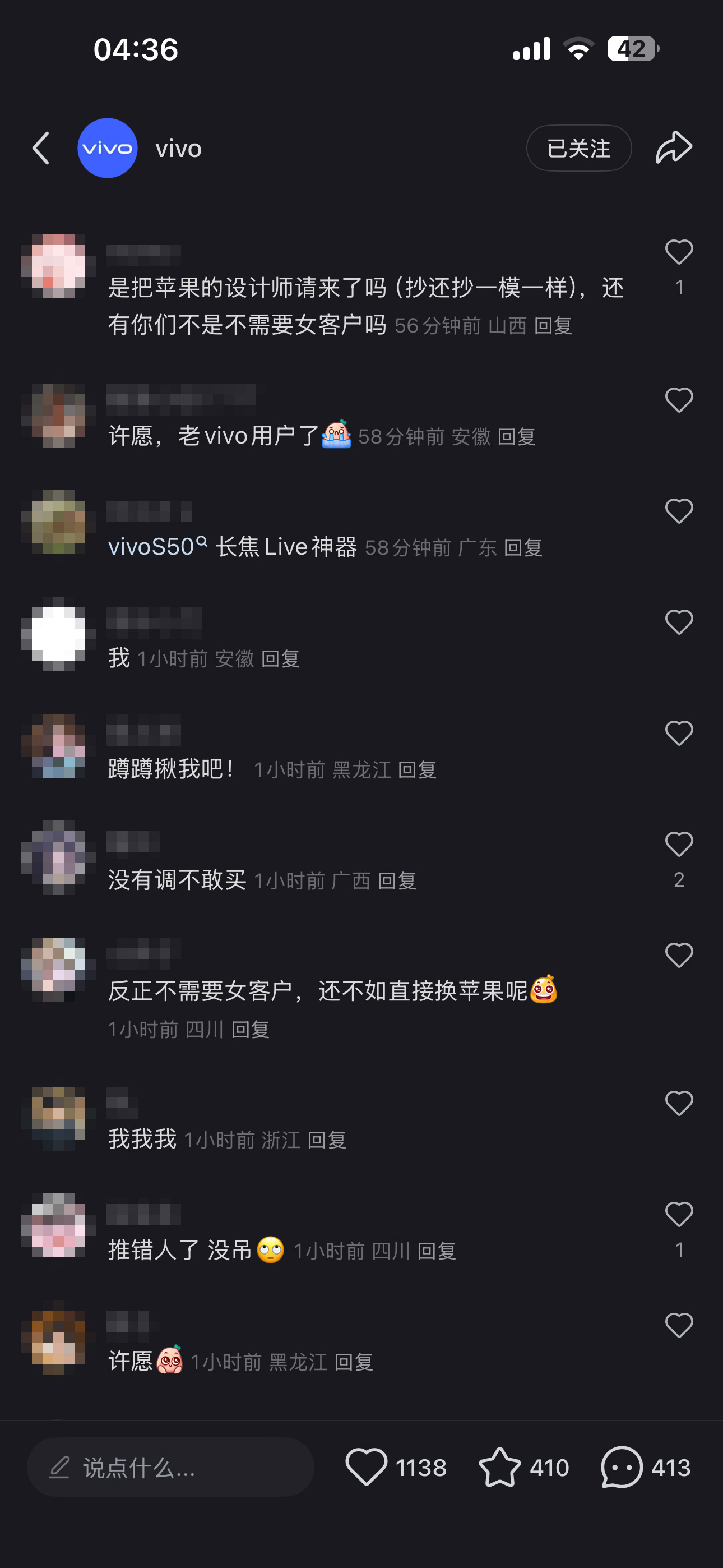 12月15日凌晨,vivo S50系列发布会在某社交平台的一条营销预热内容被刷评,多条带有攻击性或吐槽的评论被点赞顶上去,内容均与前不久vivo直播间翻车事件相关。