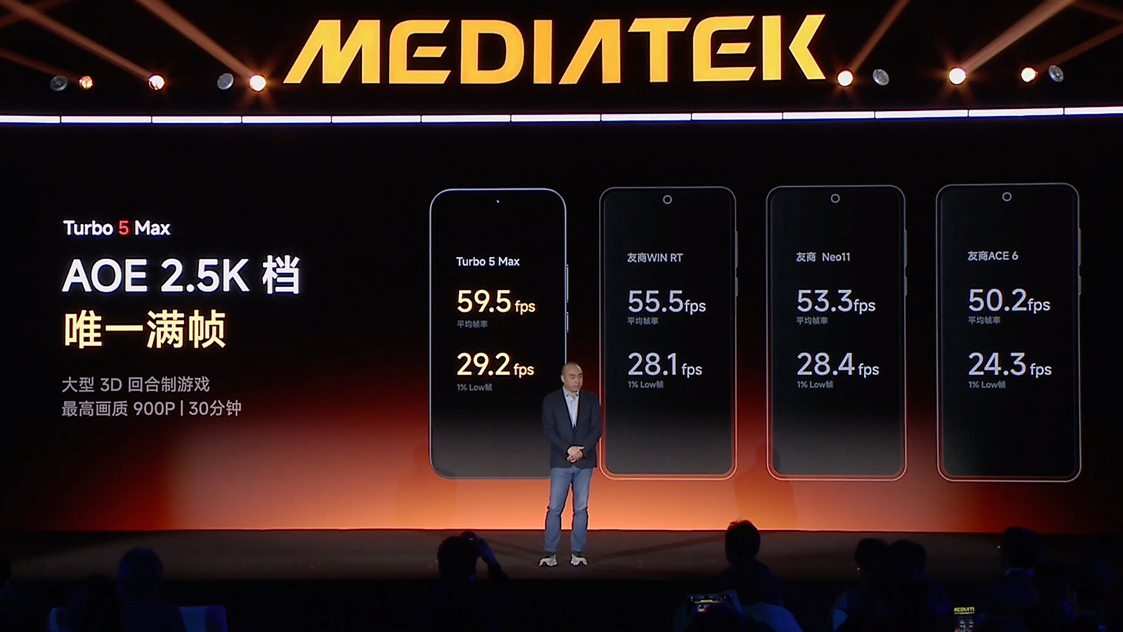 根据小米的测试数据,REDMI Turbo 5 Max跑900P分辨率的《崩坏:星穹铁道》30分钟,平均帧率明显优于使用骁龙8至尊版的荣耀WIN RT和一加Ace 6。