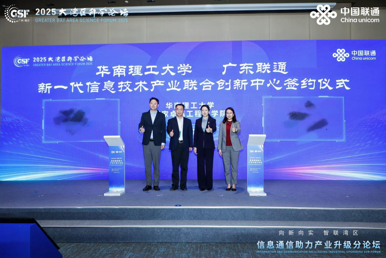 广东联通与华南理工大学新一代信息技术产业联合创新中心签约仪式同期举行。双方将共同打造产学研深度融合的创新平台,聚焦人工智能、工业互联网、新一代移动通信、安全、大数据等前沿领域,加速科技成果转化。