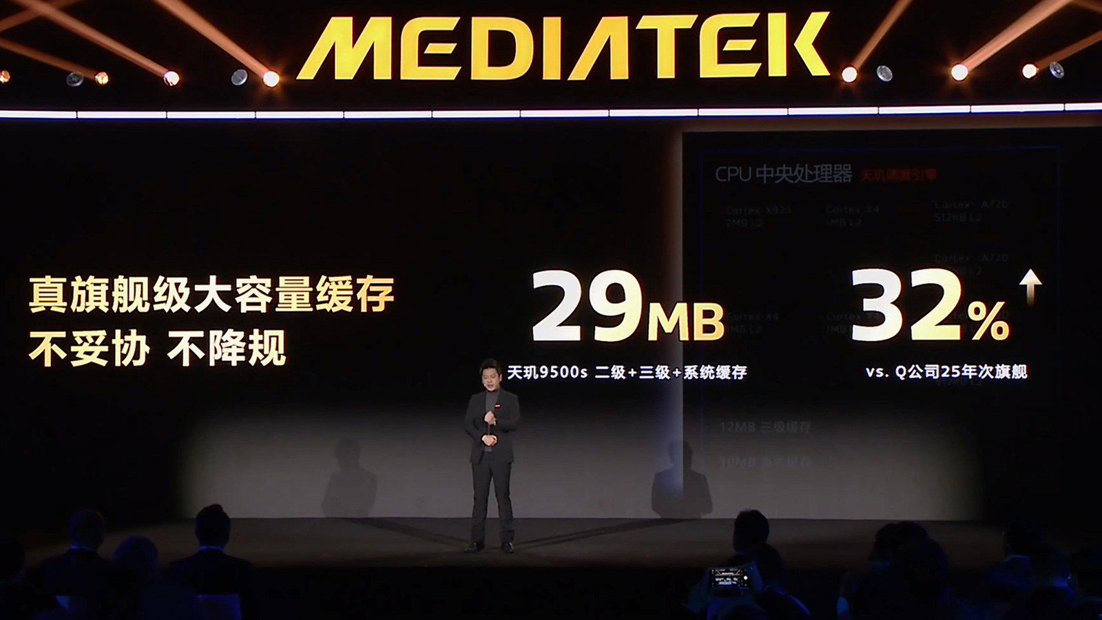 天玑9500s采用先进的3纳米制程,集成超过290亿晶体管,二级+三级+系统缓存达到29MB,相比主要竞品去年的次旗舰芯片多了32%。
