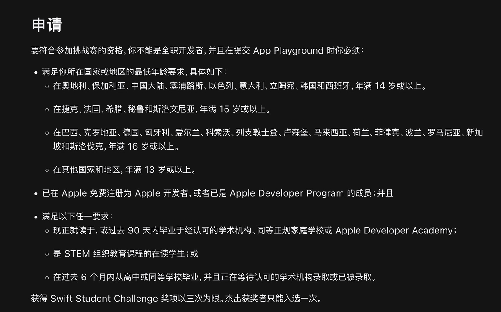 苹果正式开放2026学生编程竞赛Swift Student Challenge的申请,50位获奖者将免费前往Apple总部。