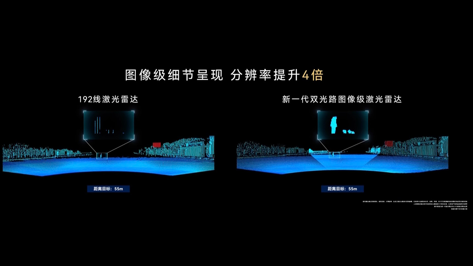 全新华为896线激光雷达首创双光路架构,一体双焦,实现超精准、超高清、超远距的感知能力升级。相比此前的192线激光雷达,新款雷达分辨率提高4倍,带来更清晰细节识别,异形障碍物识别率提升高达77%。