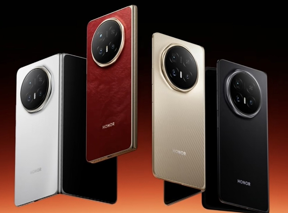 荣耀Magic V6共有红、白、金、黑四款颜色,其中主打颜色“赤兔红”为丝绒材质,一体化背板设计。需要留意的是,荣耀Magic V6仅白色版是官方重点宣传的219克、8.75毫米,其他三款颜色的重量和厚度分别为224克、9毫米。