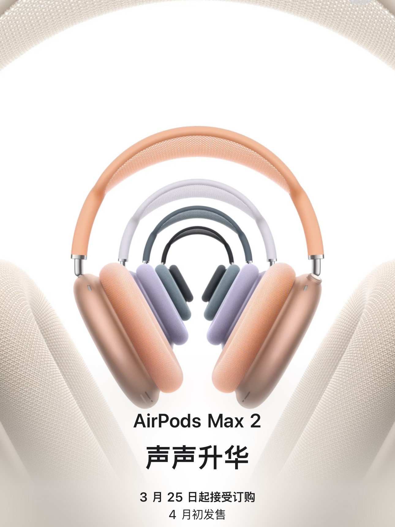 初代苹果AirPods Max于2020年12月推出,国行定价4399元。2026年3月16日直接上架的第二代苹果头戴无线耳机,价格为3999元,将于3月25日开启预订,4月初上市,每人限购6副。