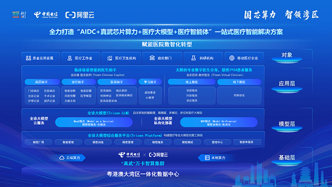 中国电信广东公司联合阿里云共同建设的粤港澳大湾区首个基于“真武”芯片的万卡智算集群,在韶关数据中心集群正式上线。