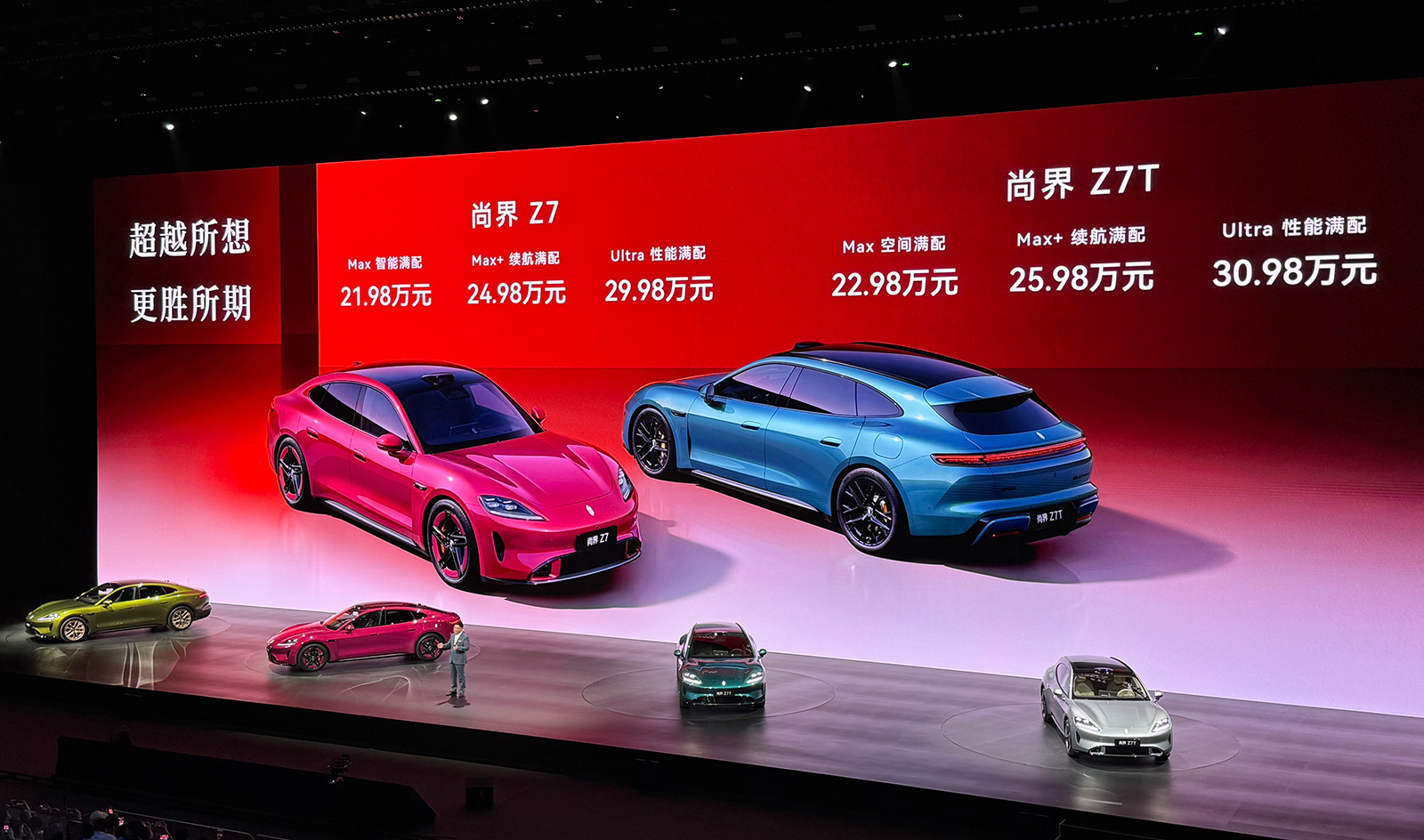 豪华C级轿跑尚界Z7上市价21.98万元起,豪华C级猎装尚界Z7T则为22.98万元,均有三款车型配置,预计5月下旬开启交付。余承东指出,尚界Z7系列不做偏科轿跑,带来五大满配。根据发布会后的官方消息,尚界两款新车27分钟大定突破12000台。